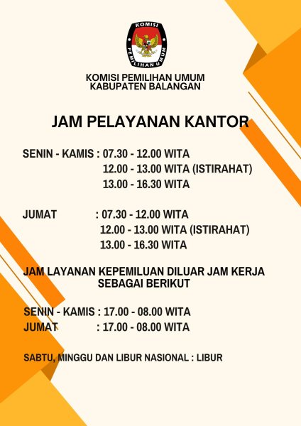 KPU sebagai lembaga penyelenggara pemilu di Indonesia juga memiliki kewajiban memberikan pelayanan publik yang transparan, akuntabel, dan profesional kepada masyarakat. Pelayanan ini tidak hanya terkait dengan proses pemilu, tapi juga menyangkut informasi, data, dan layanan administratif lainnya. Dalam pelaksanaan Layanan KPU, seorang petugas layanan harus memahami Maklumat Layanan yang ada di KPU. Adapun Maklumat Layanan KPU adalah : Adapun Jam Layanan dan Jenis Layanan yang tersedia di KPU Kabupaten Balangan, adalah : ....