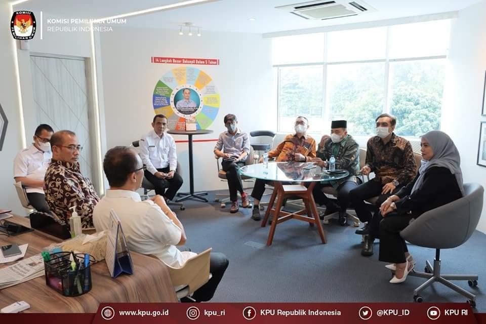 KPU RI dan Ditjen Dukcapil Kemendagri RI saling berkunjung dalam upaya pembenahan daftar pemilih Pemilu 2024.