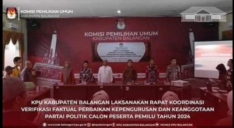 Dalam menindaklajuti hasil verifikasi faktual kepengurusan dan keanggotaan Partai Politik calon peserta Pemilu Tahun 2024, KPU Kab. Balangan melaksanakan Rapat Koordinasi, Jumat (11/11).